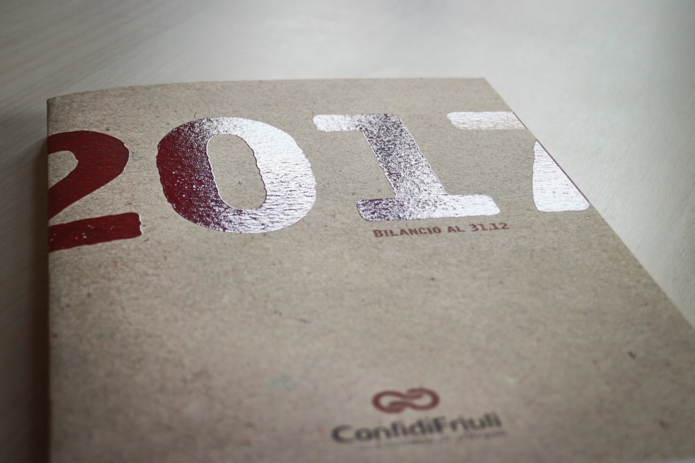 Anche per il Bilancio 2017 continua la collaborazione con il Confidi Friuli. Il tema quest'anno sono stati i sensi, abbinati ai diversi capitoli che compongono il documento. Rigore formale e grafica innovativa sono sempre le caratteristiche per la loro comunicazione. In copertina, viene simulata una serigrafia sopra una carta grezza creando per contrasto un effetto moderno e d'impatto.
